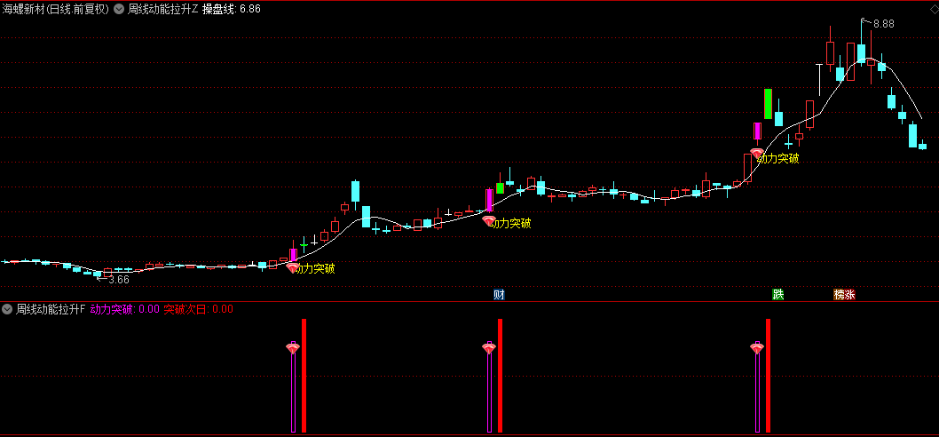 原创【周线动能拉升】主图/副图/选股指标,发掘在日线层面突破周度高点的股票!