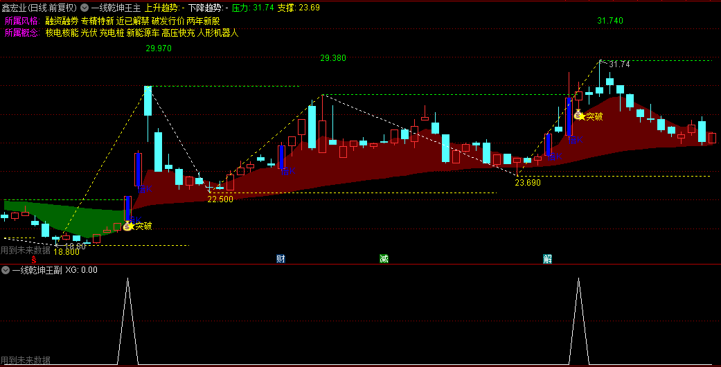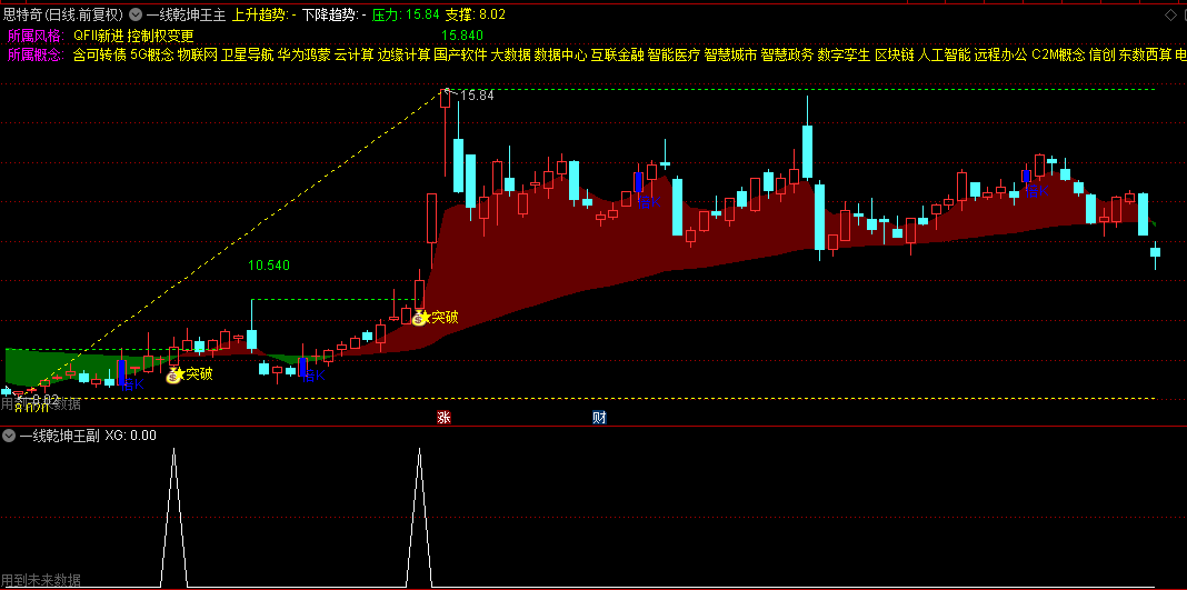 而当市场发出特殊的突破信号时,这些K线下方会赫然出现“突破”二字,并伴以醒目的钱袋子图标,提示妖股的突破点就在这里!