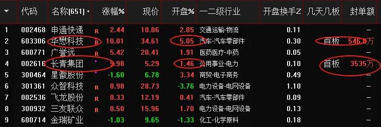 将开盘昨比从高到低排列,重点关注排名靠前的个股。