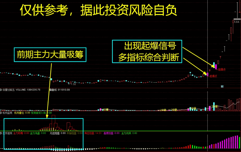 低风险跟庄实战系列之No.21【起爆连板】套装指标,出信号庄强拉,起爆选股+预警源码!