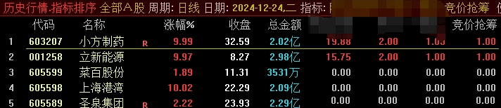 动态刷新,锁定目标:按下F8键,快速刷新数据,让最新的竞价信息跃然眼前。在这个过程中,你的任务是迅速浏览并筛选出竞价排名最靠前的股票。记住,我们的首选是那些直接以一字板开盘的个股,它们如同战场上的旗帜,引领着市场的风向。