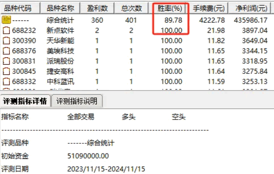 在评测期间,共进行了401次交易操作。