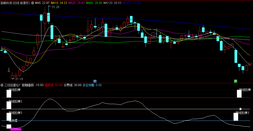 短线反弹信号:当VAR1D、VAR2E或VAR3F的条件触发时,系统提示短线反弹机遇,投资者可据此考虑入场。