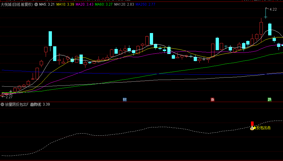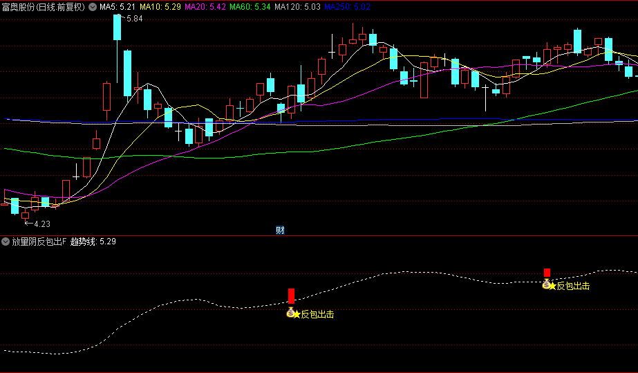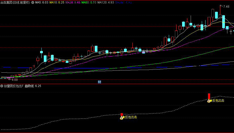 当上述四个条件同时满足时,“反包出击”指标便会在图表上以红色柱状线标出,