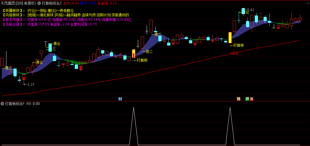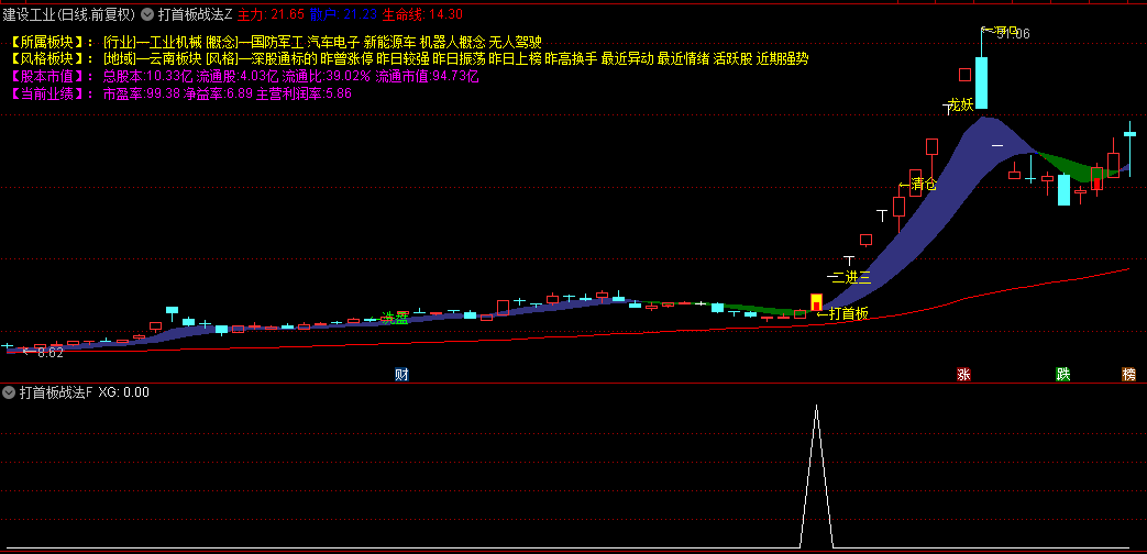 在主图指标中,我们还特别标注了多种关键信号,如首板信号、二进三信号、一进二信号、龙妖信号以及清仓信号等,这些信号如同灯塔一般,指引着投资者在市场的波涛中航行。