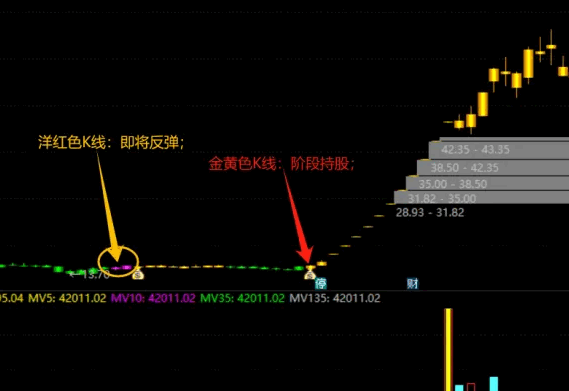 当K线呈现出洋红色时,这往往预示着市场即将迎来一波反弹行情。