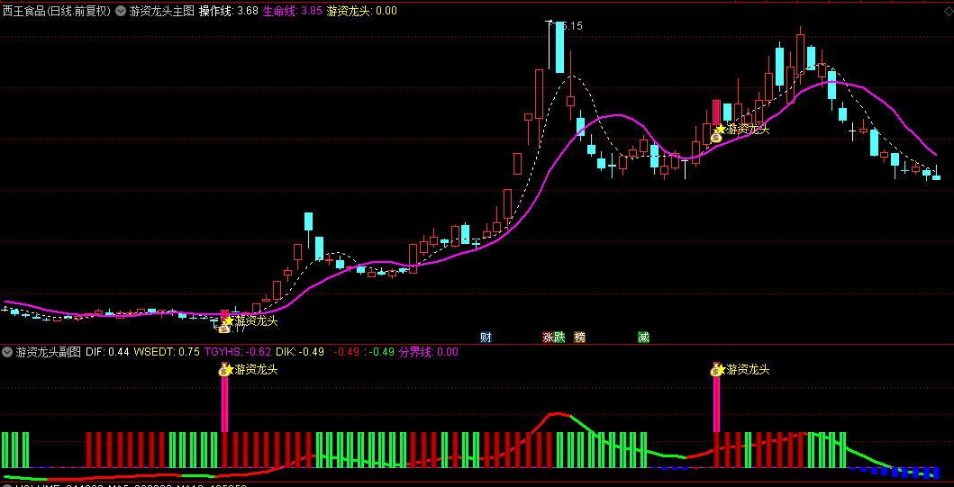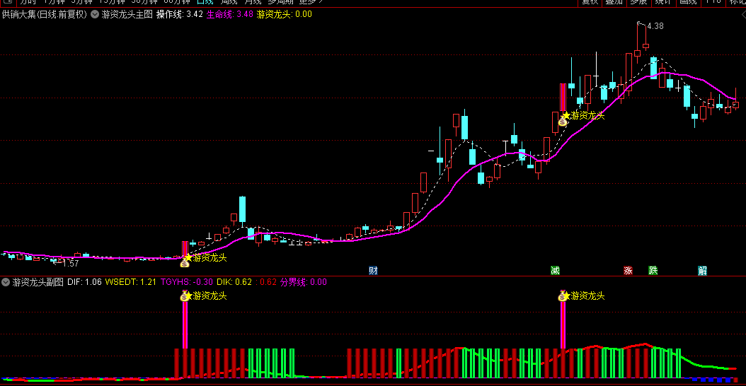 副图指标则为我们揭示了游资资金流动的奥秘。通过不同颜色的柱子,我们可以直观地了解到游资资金的流入与流出情况。