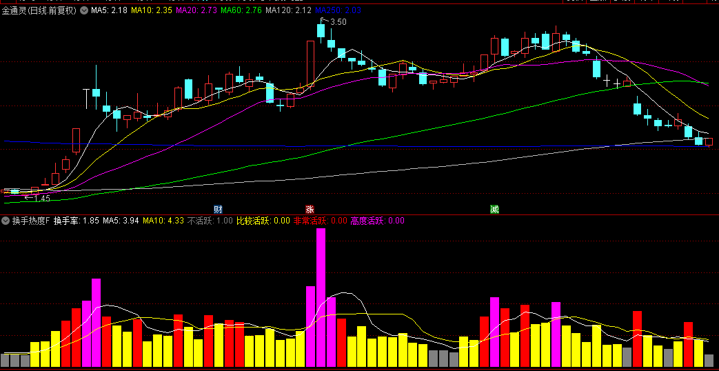 不活跃状态:当换手率低于3%时,表明该股票交易相对冷清,市场关注度不高。此时应谨慎涉足,以防流动性风险。