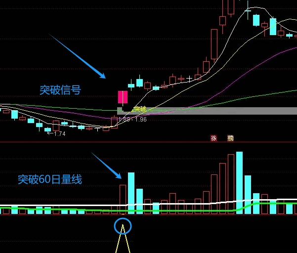 然而,真正的突破信号并非仅仅如此简单。当某根量能柱成功突破黄色60日平均成交量线时,这根量能柱必须是阳线。