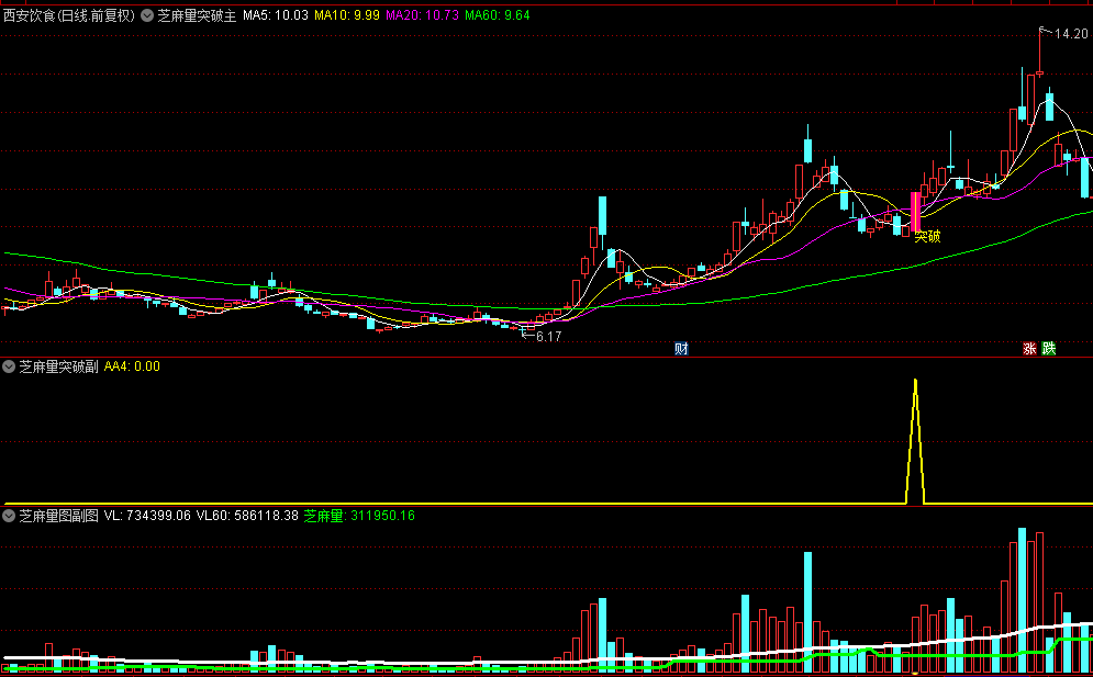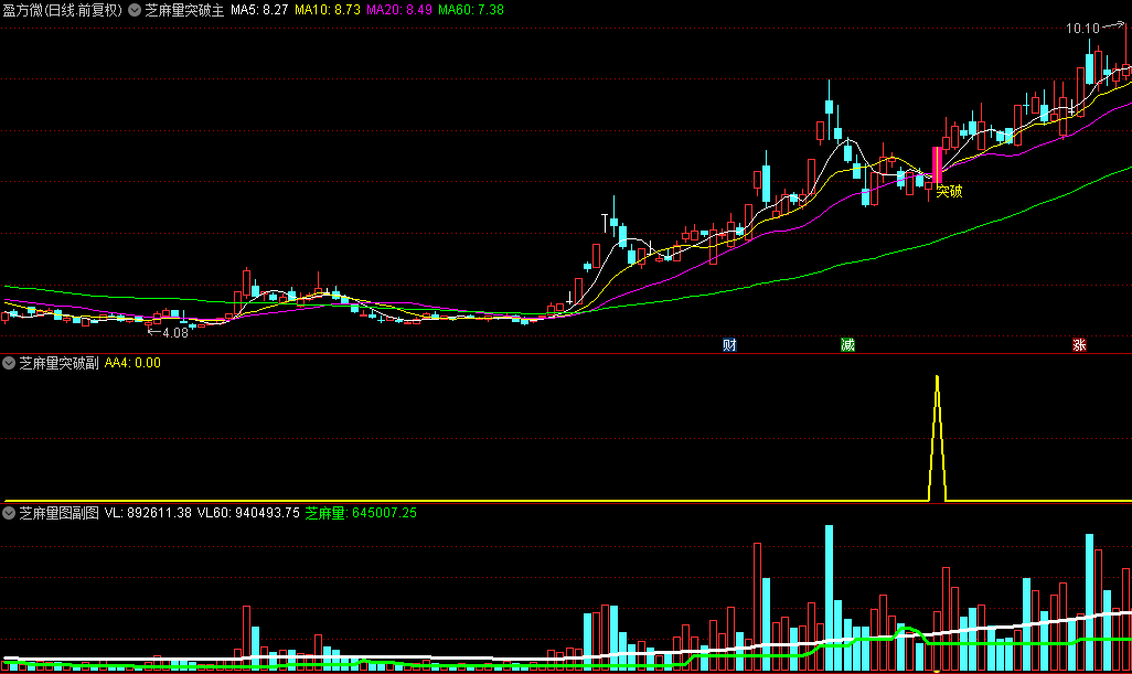 这一战法的核心在于对量能的精准把握。本指标主图中我们通常会看到一条绿线,被形象地称为芝麻量。