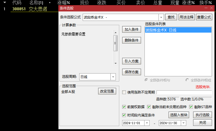 注意:该指标选股数量非常少,11月才1只,不喜勿下。