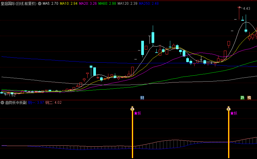 在“趋势妖中妖”指标中,“纲一”和“纲二”是两条至关重要的均线或趋势线,分别代表不同的市场状态和趋势特征。