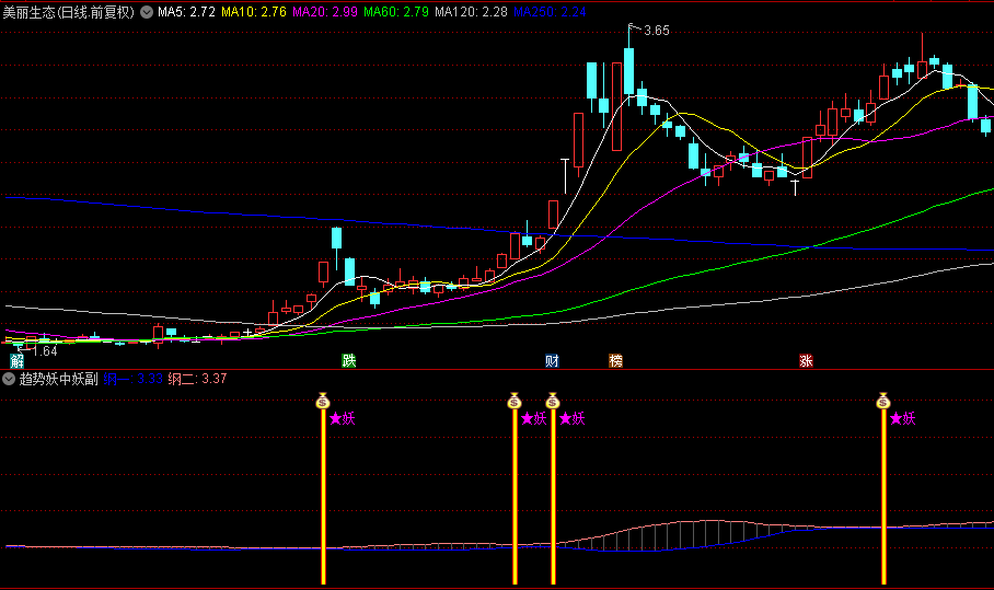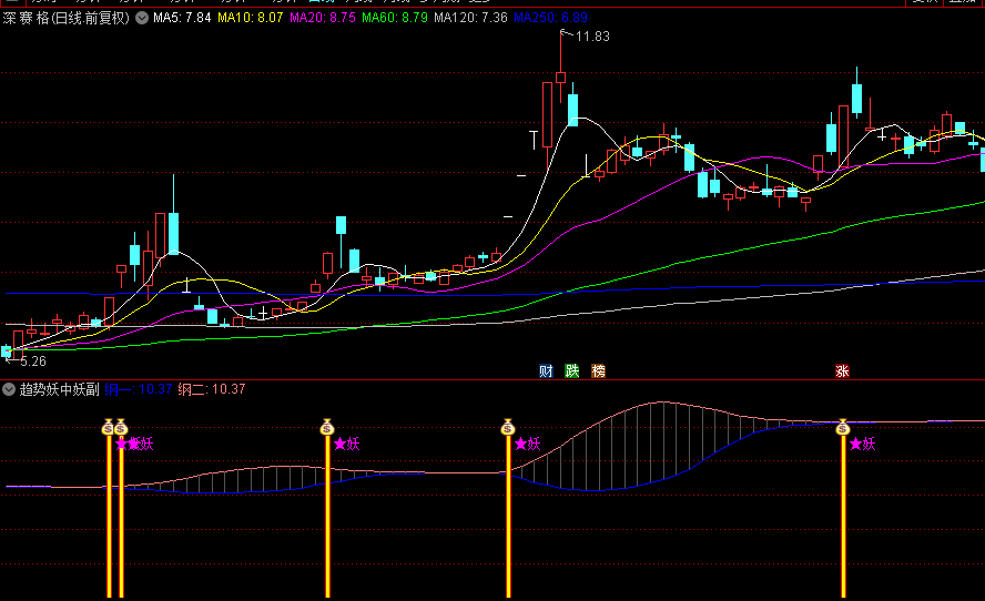 直观信号显示:在通达信软件中,“妖中妖”信号以“钱袋子”柱子的形式直观展示,让投资者一目了然地看到筛选结果和交易信号。