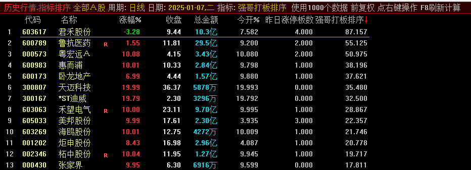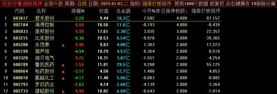 副图排序:通过计算股票的开盘涨幅、量比、昨日涨停板数等指标,对股票进行排序,帮助投资者快速筛选潜力股。