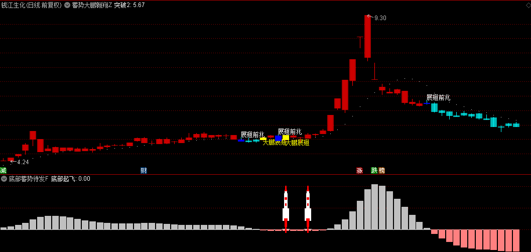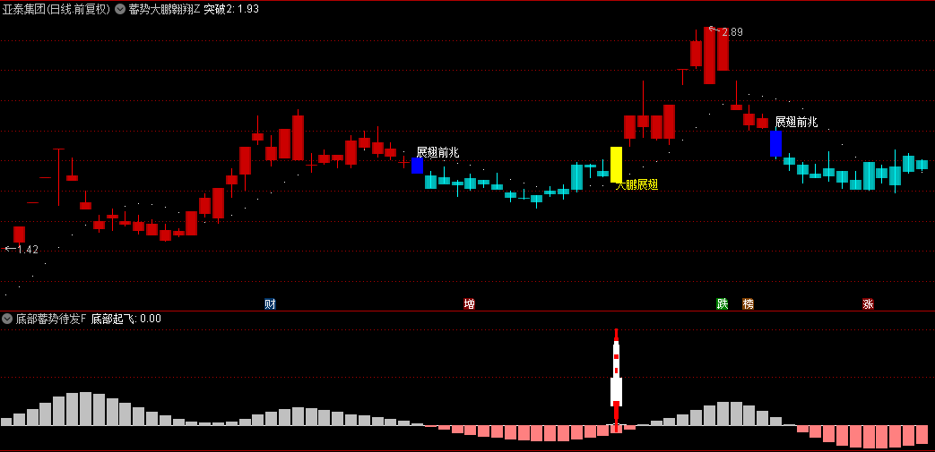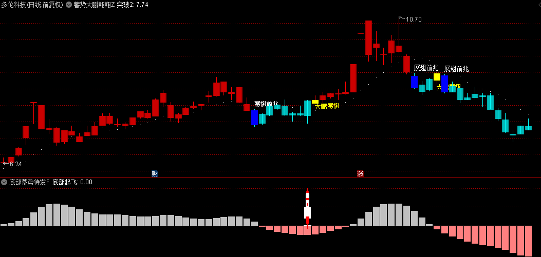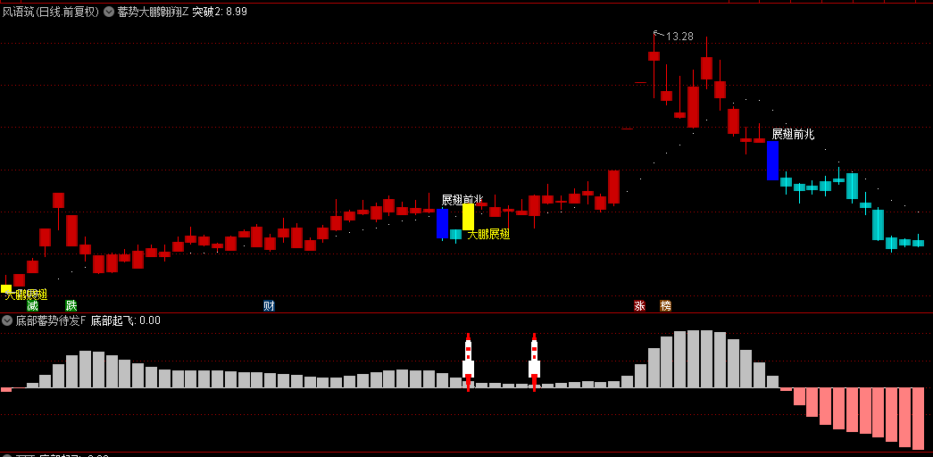 而“蓄势大鹏翱翔”主图指标与“底部蓄势待发”副图指标的共振,正是这样一把开启主升浪的神秘钥匙。