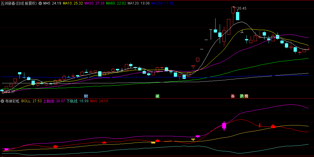 通达信【布林彩虹】解密版副图指标,BollRainbow,预判强烈的上涨下跌趋势!