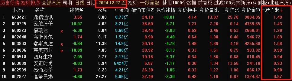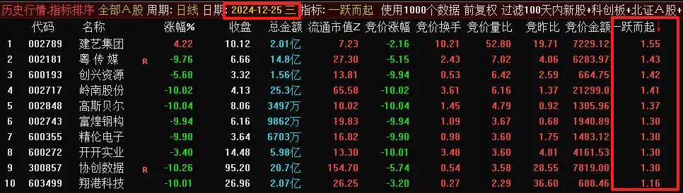 分享一个一跃而起绿盘低吸的集合竞价排序指标,这个指标我发现很热门,