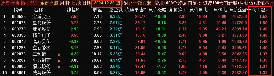 【一跃而起】副图排序指标,绿盘低吸的竞价排序指标,适合不喜欢冒险又想要做涨停强势股的朋友!