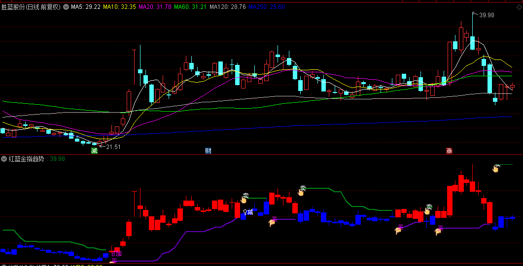 此时,若图表上出现“卖”字提示,伴随“♀减”标记,则是减仓或离场的明确指示。
