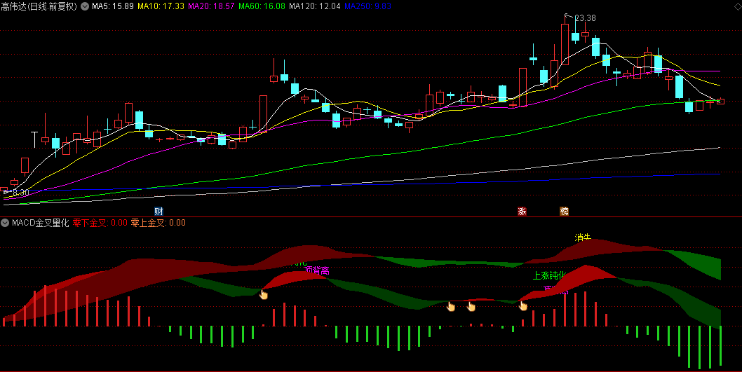 指标中,金叉与死叉的判断被赋予了新的生命。零下金叉和零上金叉被明确区分,并以不同颜色标注,帮助投资者快速识别市场可能的转折点。