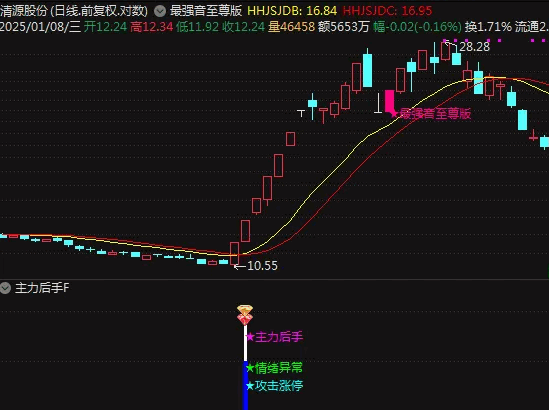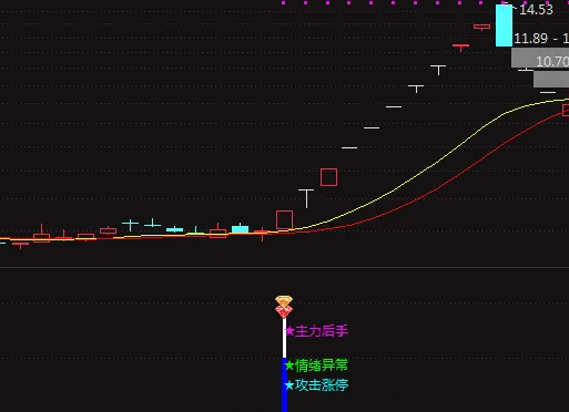 自己收集优化的指标,出信号就会有“主力后手*情绪异常*攻击涨停”的文字提醒,信号出现的位置恰到好处!