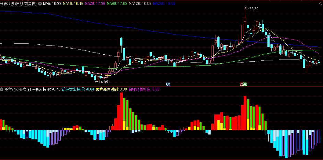 为了更直观地展示市场动态,指标还设计了丰富的色彩柱体。