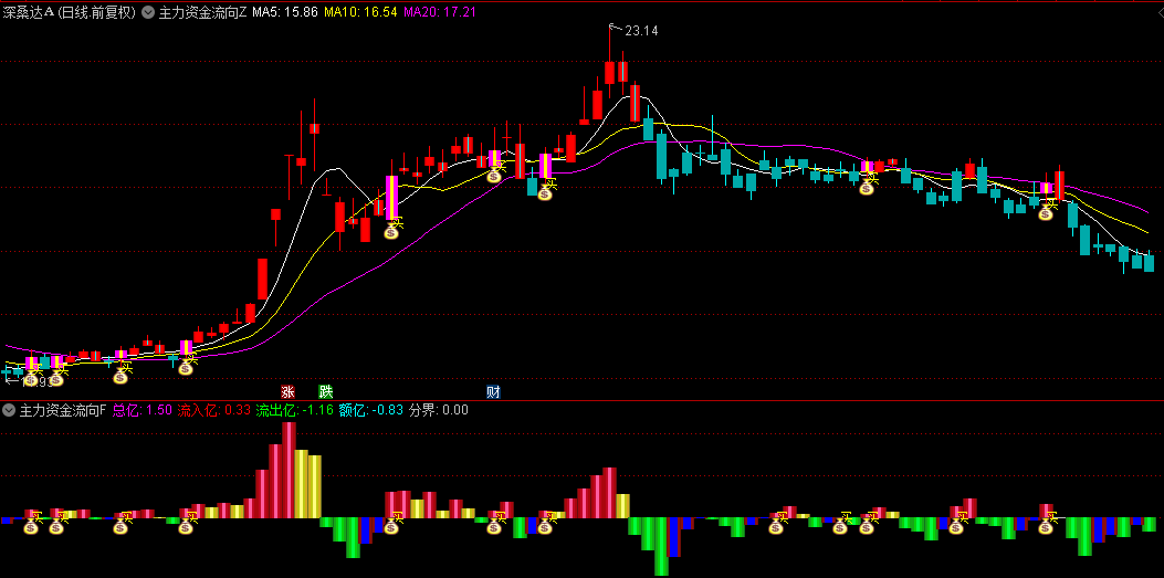 通过计算短期(5日、10日、20日)和中期(如通过EMA计算的10日均价)的价格平均水平,以及通过特定算法计算的资金流入与流出量,为大家提供决策支持。