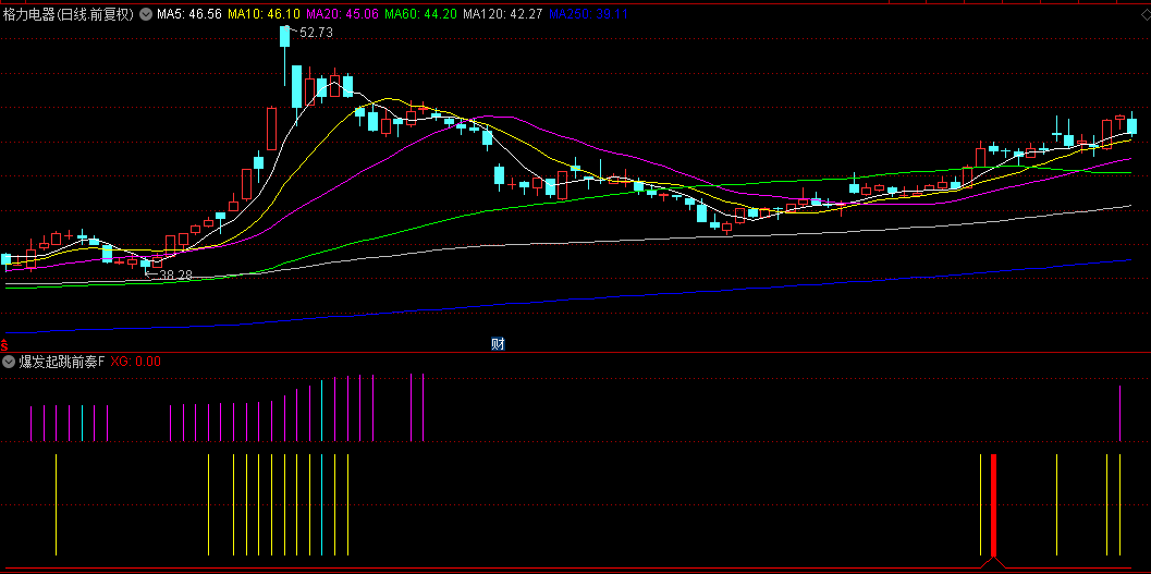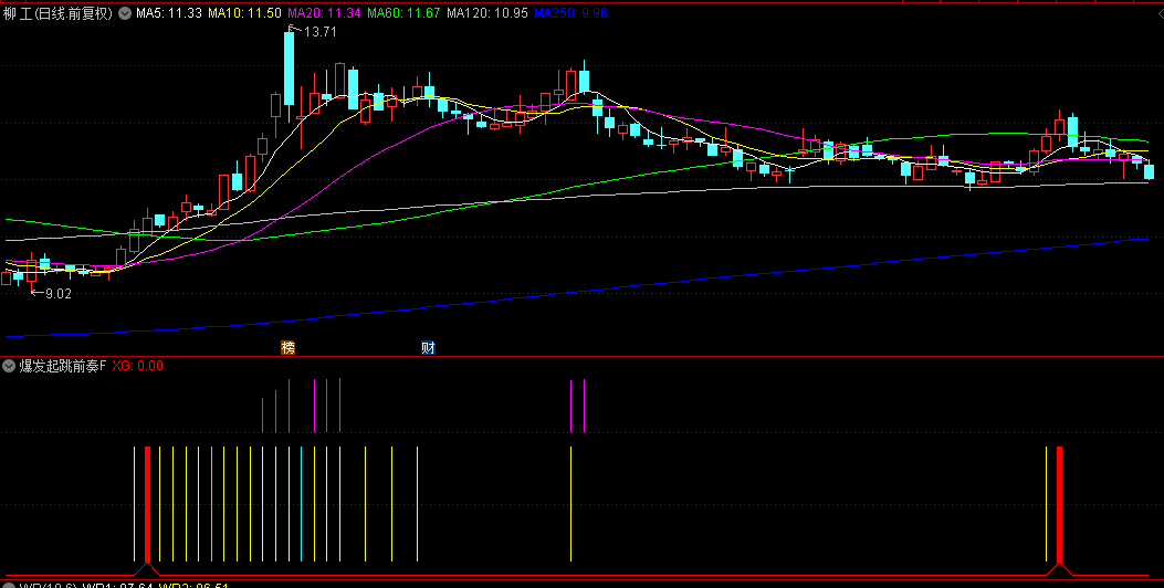 爆发起跳前奏副图指标是一种基于股票价格和移动平均线的高级技术分析图表。