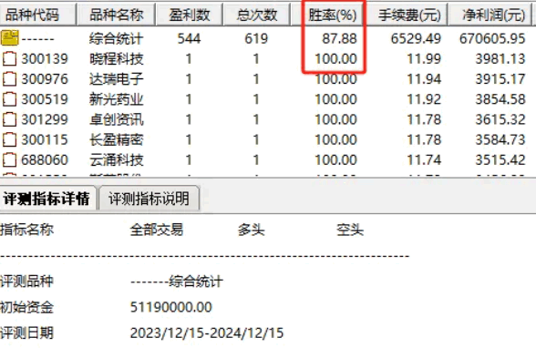 在持股周期仅为2天的情况下,胜率高达87%,这意味着大部分交易都能在短时间内实现盈利。