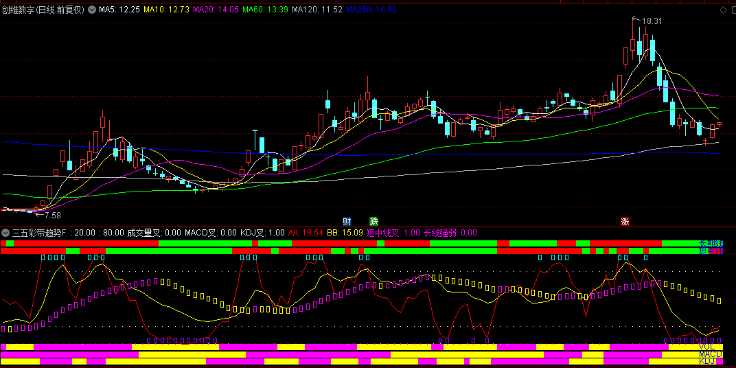 它以三条趋势线搭配五条彩带的独特设计,为投资者提供了清晰、直观的股价走势图及操盘策略指导。