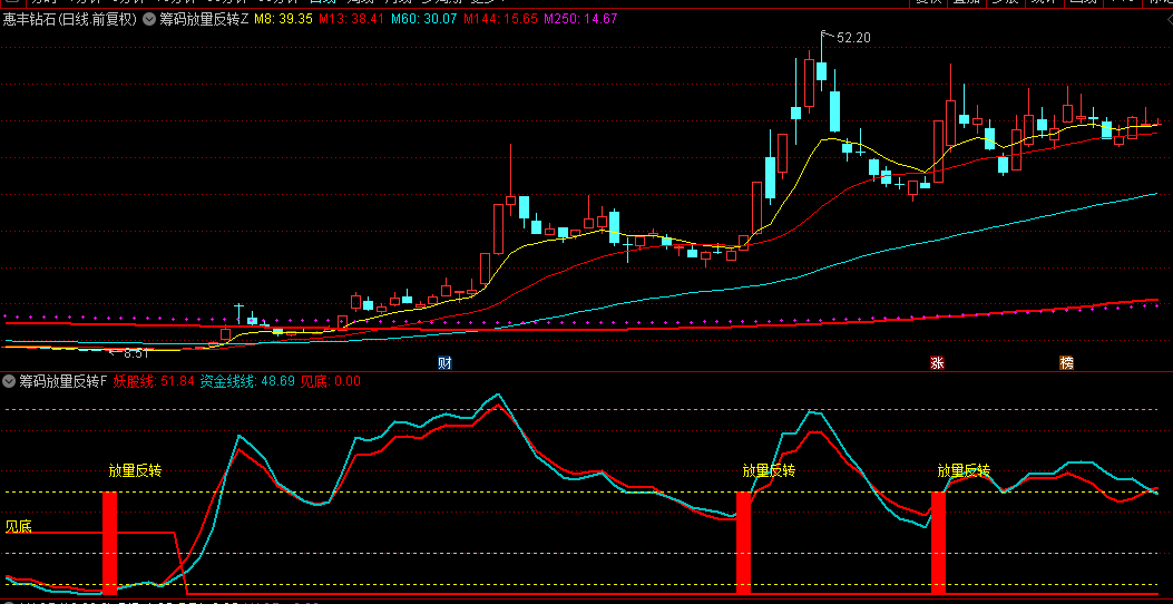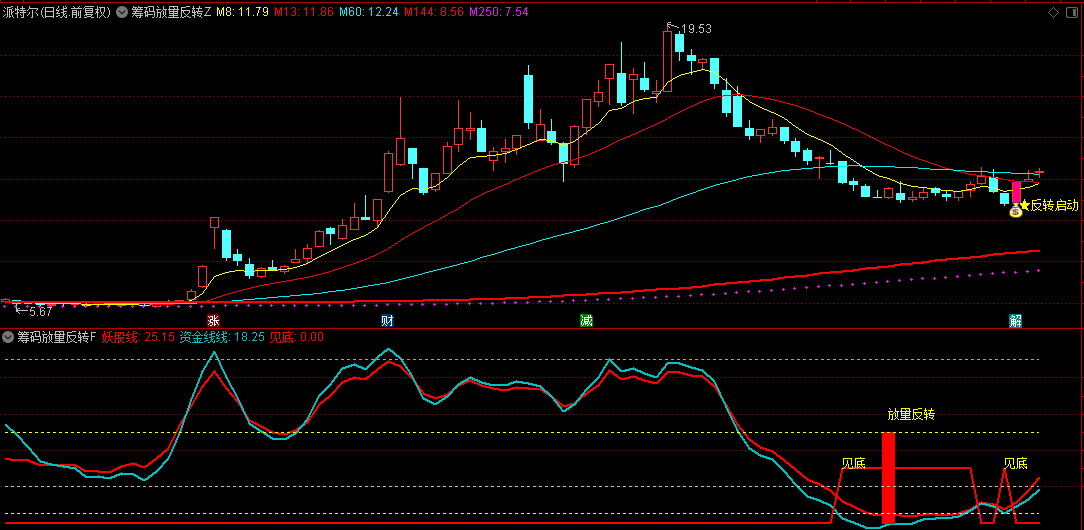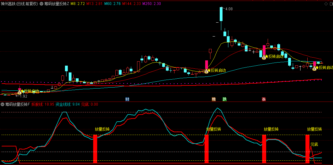 而“筹码放量反转”指标的主图部分,正是用来捕捉这一反转启动信号的。