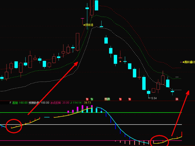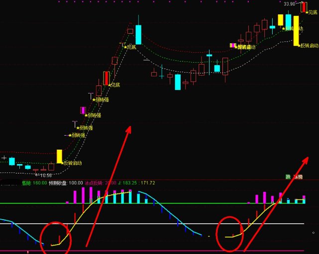 而此时,如果副图同时出现山谷红柱见底信号,那么这就是一个确定性的打板机会。