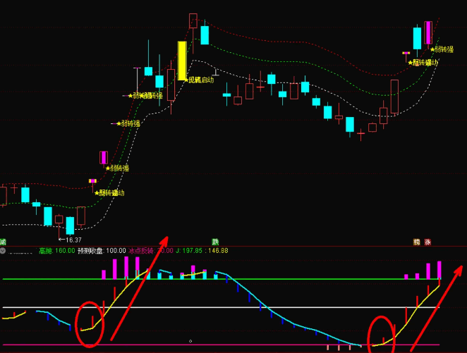 除此之外,转强反转打板指标还具备弱转强信号提示功能。