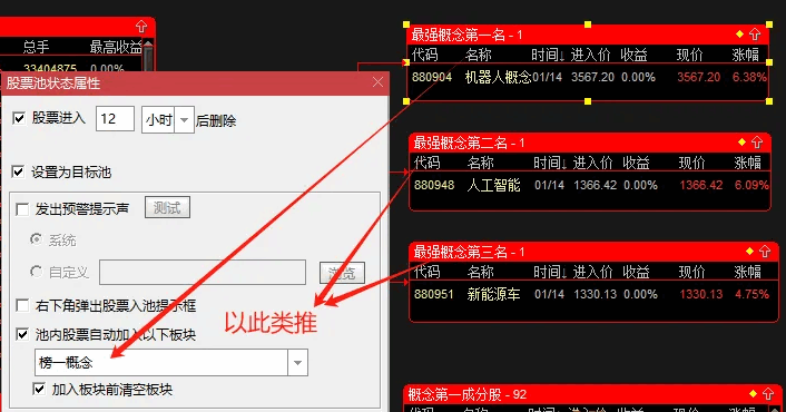 第三步新建自定义板块(概念指数,榜一概念 , 榜二概念 , 榜三概念 ,通用选股池 ,最强成分股)名字不要错