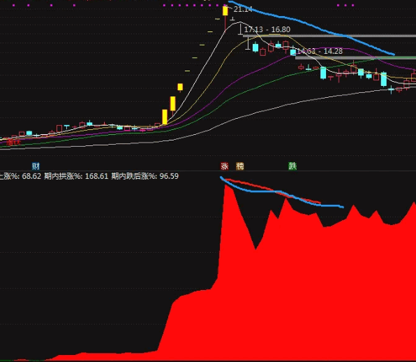 涨跌幅分析:指标还提供了比统计日上涨%、期内拱涨%、期内跌后涨%等多个涨跌幅分析指标。