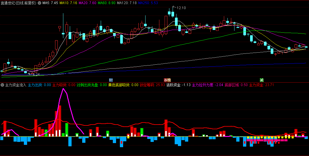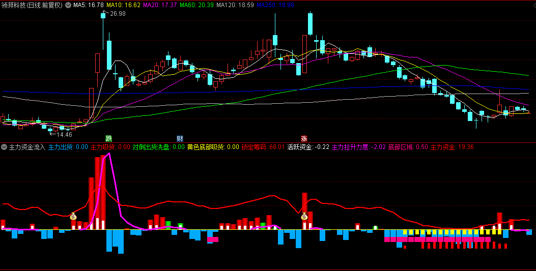 指标中的“主力资金”线,作为核心指标之一,通过计算股价在特定周期内的相对位置,反映了主力资金的长期流向。