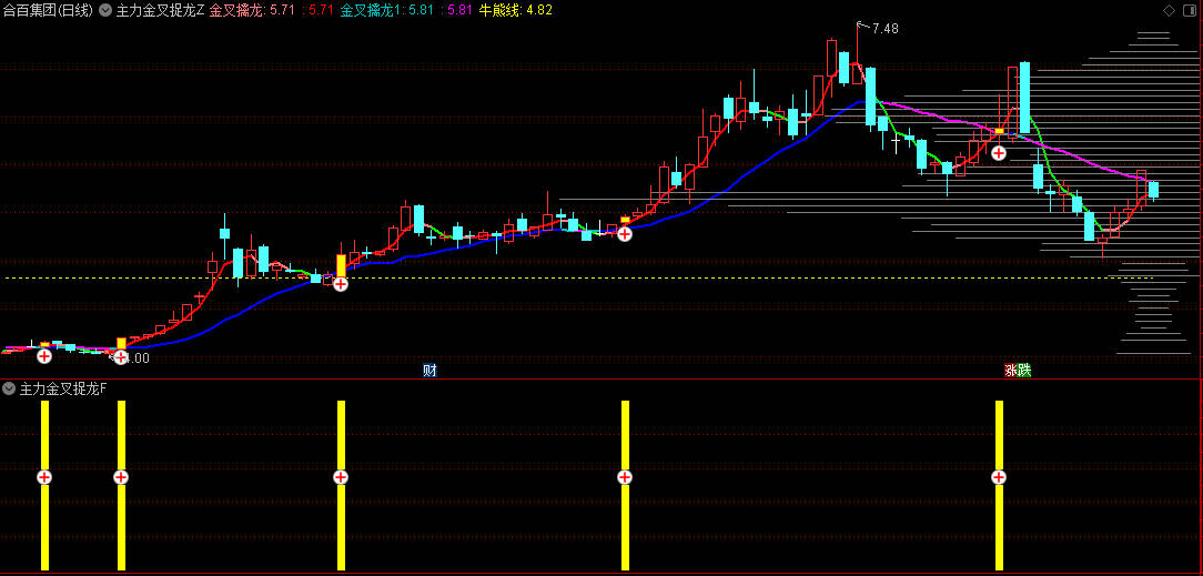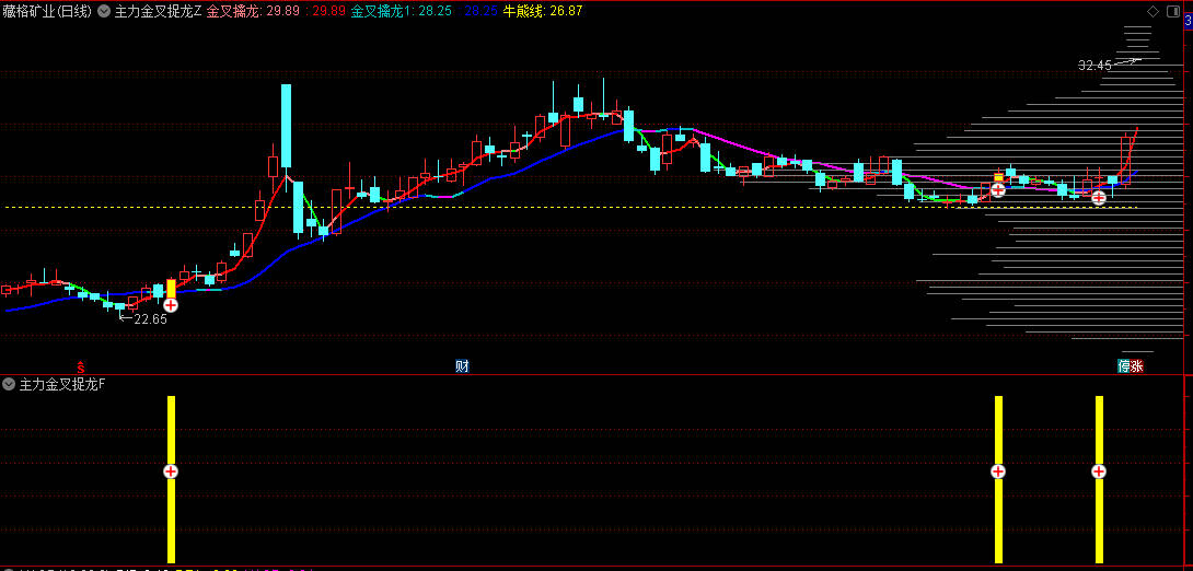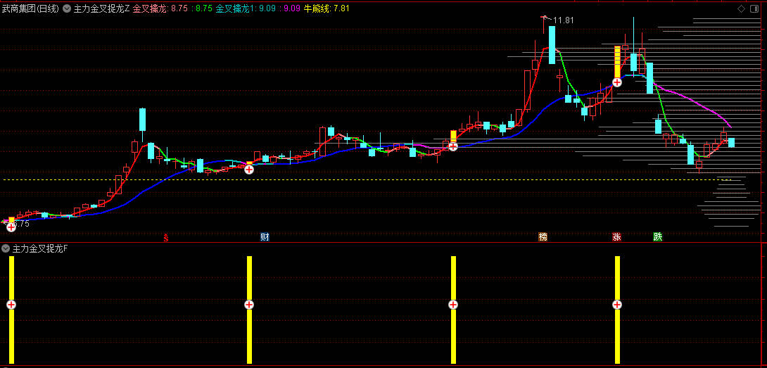 【主力金叉捉龙头】集成了主图、副图及选股指标,旨在通过精准的技术分析帮助投资者捕捉市场中的龙头股。