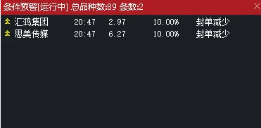 在此统一回复:此指标主要针对已涨停的股票,当有人撤单或卖单量较大时,会触发预警。它更多用作卖出提醒,当然,也可以用于预警后打回封,但前者情况更为常见。