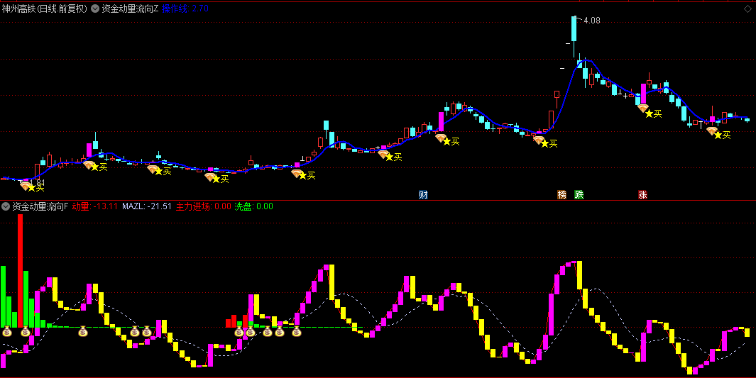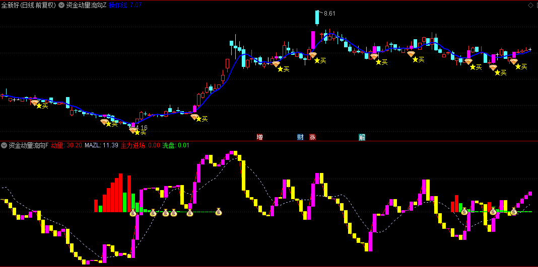 通达信【资金动量流向】主图/副图/选股指标,趋势追踪+资金流向判断主力动态轨迹