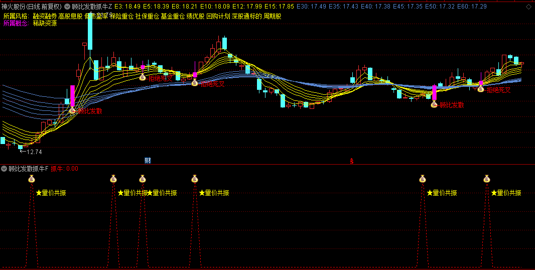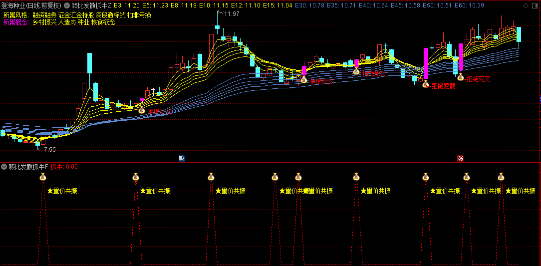 短线高手使用的【顾比发散抓牛】主图/副图/选股指标,量价共振捉牛市信号,实盘准确率高!