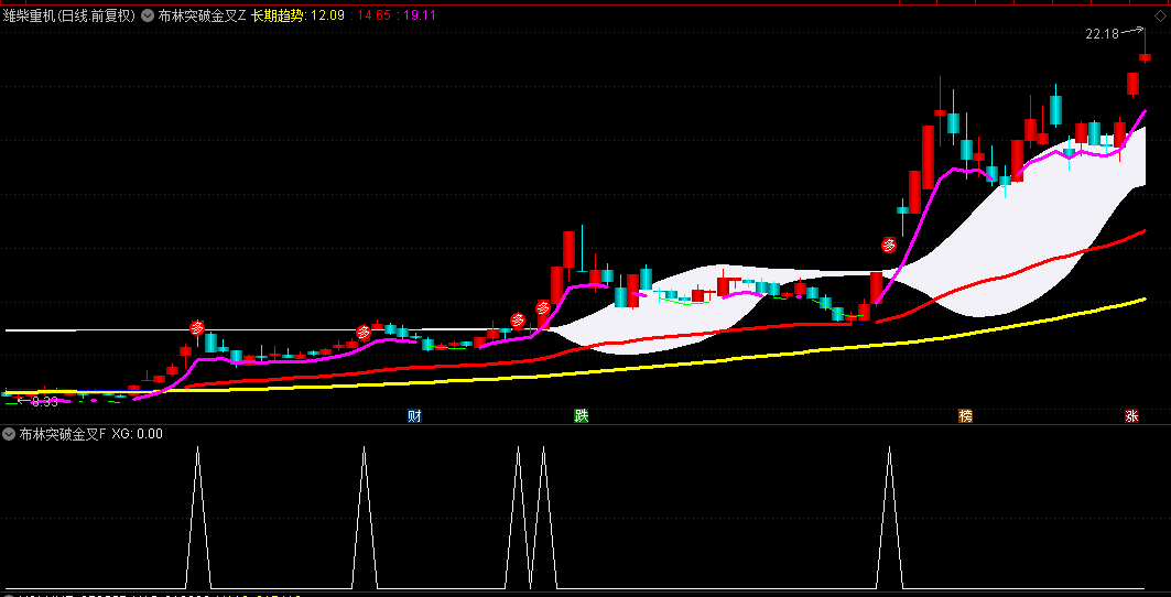 某机构操盘手自用的【布林突破金叉】主图/副图/选股指标,成功突破白色带状区域,是确凿买入契机