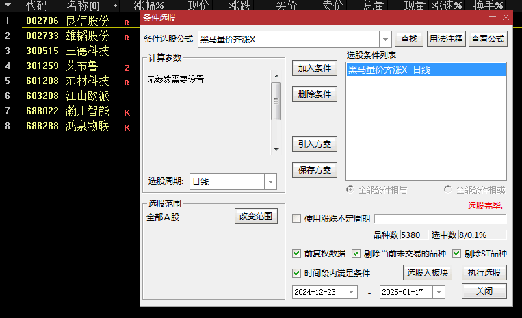 该指标首先通过一系列条件筛选,排除掉那些存在风险或不利因素的股票。具体来说: