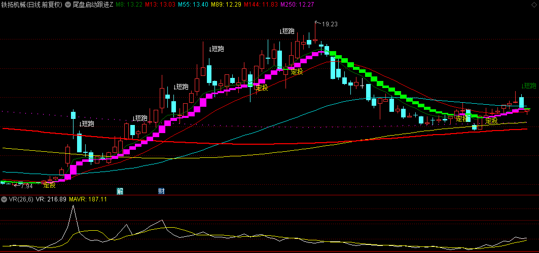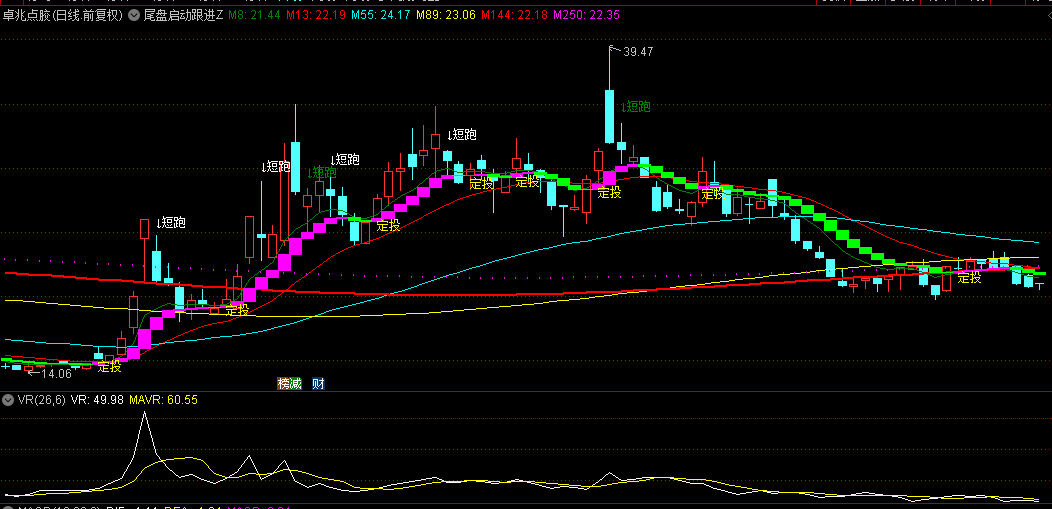 此外,指标还巧妙地运用了标准差、简单移动平均等技术,结合了收盘价的标准差,用于识别股价的波动范围,并在特定条件下发出“短跑”信号,提醒投资者注意短期回调风险。