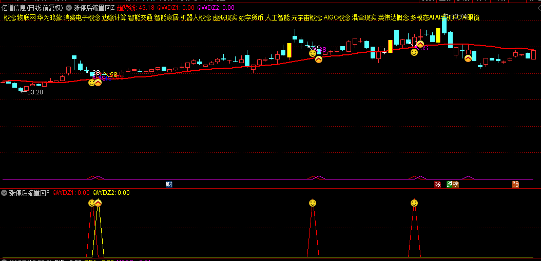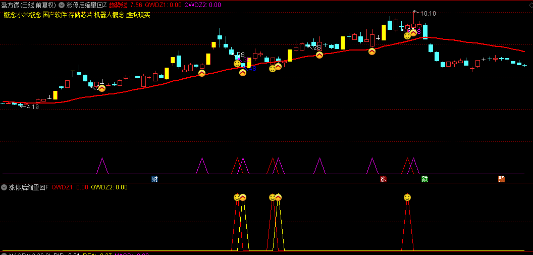 副图指标是对主图指标的补充和辅助,它更加简洁地呈现了缩量回调的关键信号。