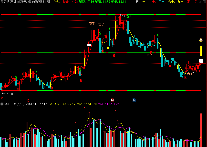 箱腰:IF(AB>0 AND AB-BA<=0,D,D),LINETHICK3,COLOR00FF00;