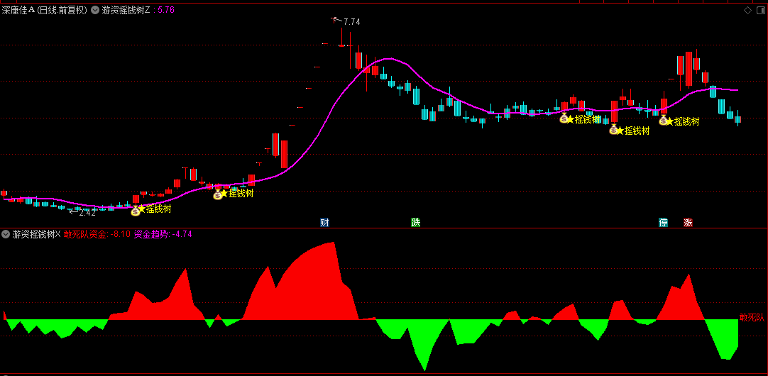 通达信【游资摇钱树】主图/副图/选股指标,根据游资资金动态,给出直观买卖信号