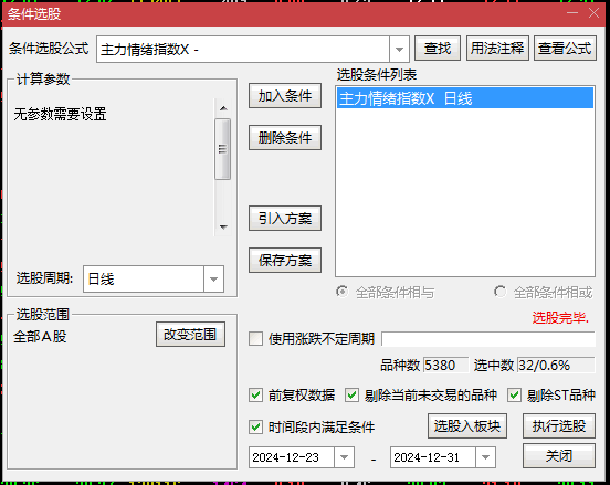 基于主力情绪指数的逻辑,我们还开发了一款选股指标。