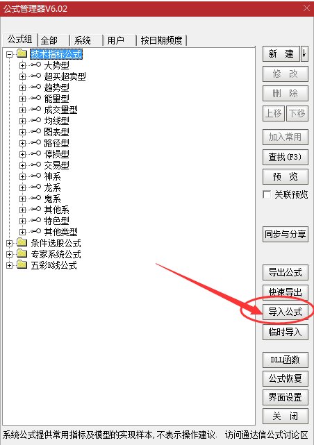 点击“导入公式”,找到下载好的指标,点打开