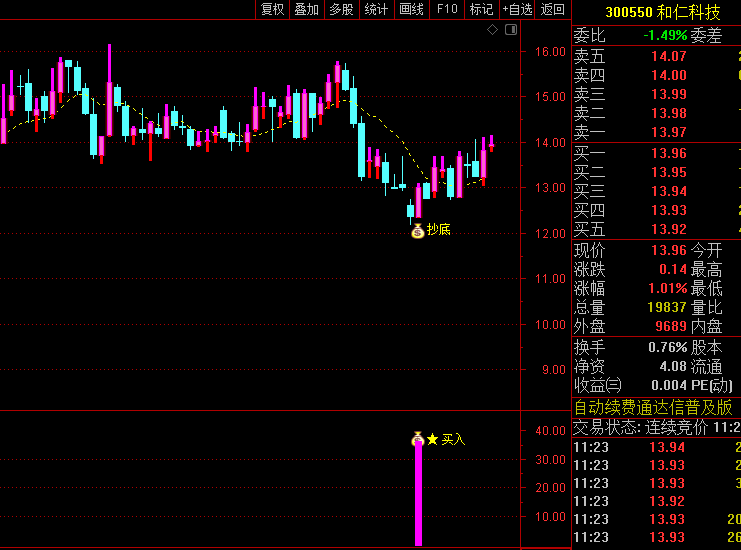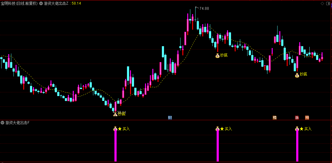 当满足特定条件时,指标会在图表上显示出“抄底”文字提示和相应图标,为投资者提供直观的买入信号。