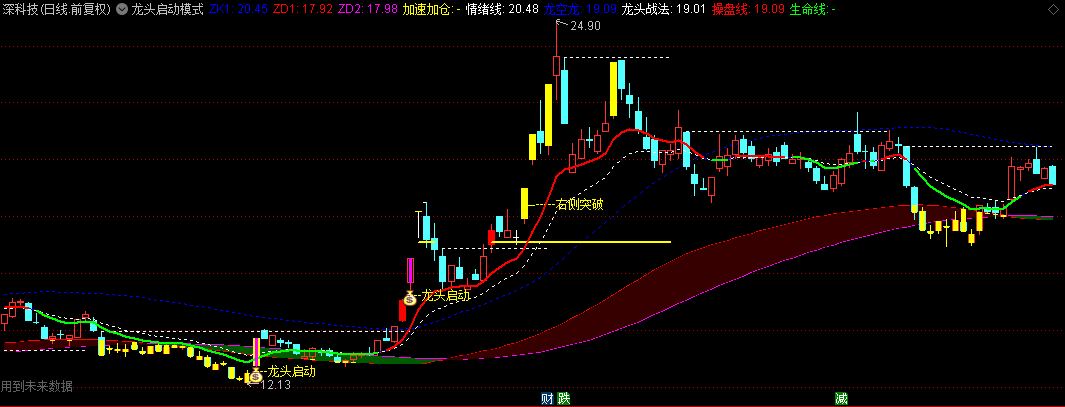 在实战中,投资者可以结合“龙头启动模式”指标的红绿带判断中线趋势,同时关注龙头启动和右侧突破信号进行短线操作。